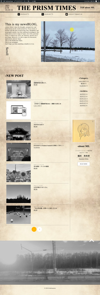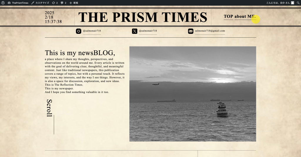 最初にこのブログサイトを開いた時点で、モチーフである海外の新聞のような雰囲気が伝わるように英語を多く取り入れました。